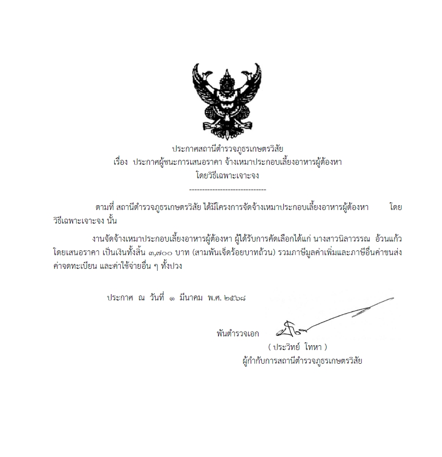 รายละเอียดจ้างเหมาประกอบเลี้ยงอาหารผู้ต้องหา ประจำ...