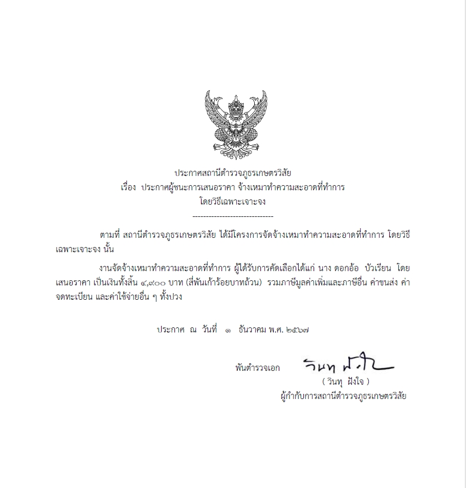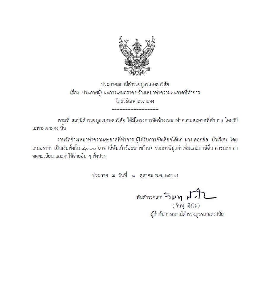 รายละเอียดจ้างเหมาบริการทำความสะอาดอาคารที่ทำการ ส...