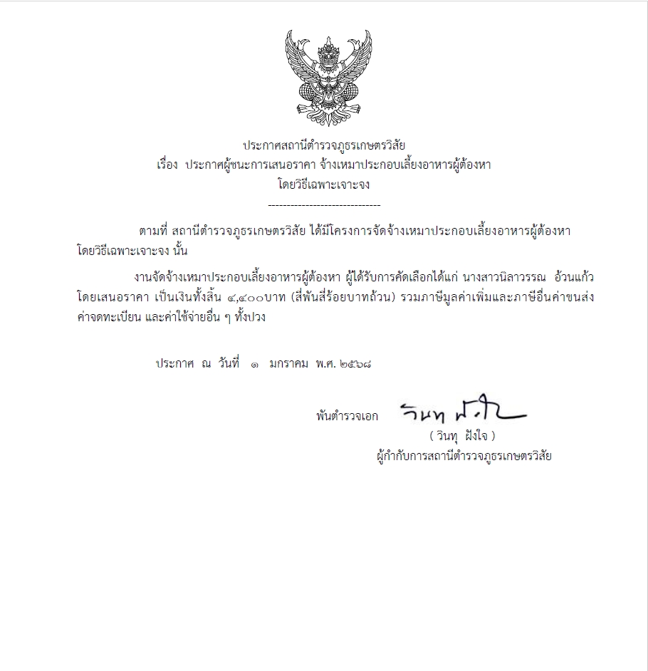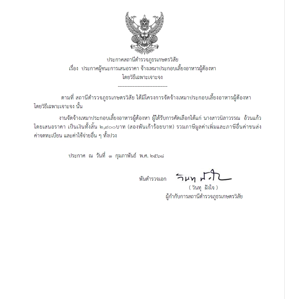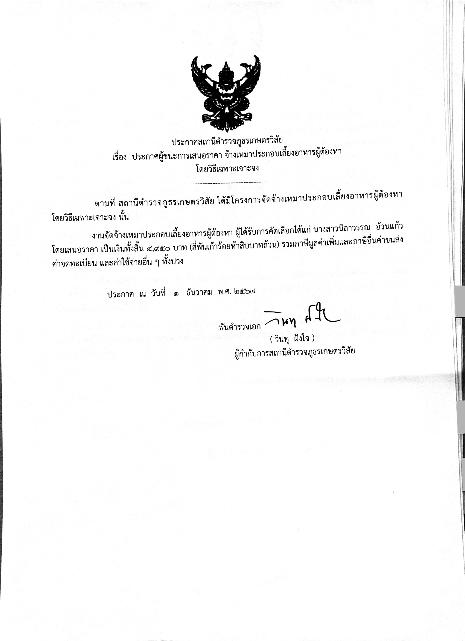 รายละเอียดจ้างเหมาประกอบเลี้ยงอาหารผู้ต้องหา ประจำ...
