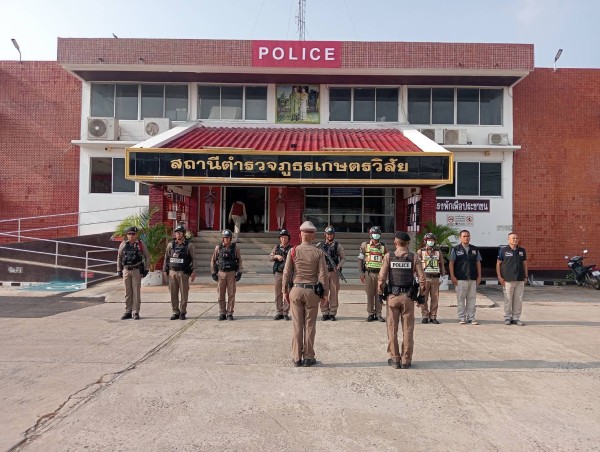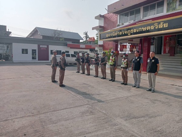 วันที่ 11 เมษายน 2568 โดยอำนวยการของ พ.ต.อ.ประวิทย์ โทหา ผกก.สภ.เกษตรวิสัย ในการควบคุมการปฏิบัติของ พ.ต.ท.สุวิทย์ ปะกำแหง รอง ผกก.ป.ฯ วันนี้ เวลา 07.30 น. ร.ต.อ.สรกฤช หนองเรือง รอง สวป.ฯ พร้อม พ.ต.ท.บุญศรี เดชชัย สว.สอบสวน ได้เรียกสายตรวจ เวรบูรณาการ เพื่อเคารพธงชาติ รับฟังข้อราชการ และ มอบหมายภารกิจการปฏิบัติของผู้บังคับบัญชา ในการรักษาความปลอดภัย และอำนวยความสะดวกด้านการจราจร ช่วงเทศกาลสงกรานต์ ประจำปี 2568