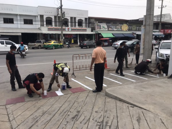 ทาสีที่จอดรถหน้าธนาคารออมสิน