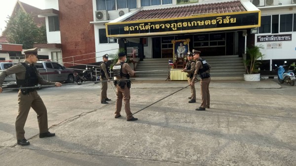 วันที่ 6 กุมภาพันธ์ 2568 ร้อยเวรป้องกันปราบปราม ได้ทำการอบรมชี้แจงข้อราชการ ตักเตือน แนะนำการปฏิบัติ และฝึกทบทวนยุทธวิธีการระงับเหตุ บุคคลมีอาการคลุ้มคลั่ง อาละวาด ให้กับเวรสายตรวจ และนักเรียนนายสิบตำรวจฝึกงาน ให้เกิดทักษะ ความชำนาญ สามารถนำไปใช้อย่างถูกต้อง เมื่อมีเหตุเกิดขึ้น