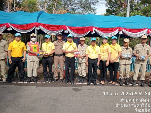 วันที่ 13 เมษายน 2568 ร.ต.อ.ทองแดง ศักดิ์แสง และ ร.ต.ท.วันชัย เวียงคำ สายตรวจ ต. กู่กาสิงห์ ออกตรวจเยี่ยมจุดตรวจ จุดบริการประชาชนและเฝ้าระวังอุบัติเหตุทางถนน ช่วงเทศกาลสงกรานต์ ประจำปี 2568 พร้อมนี้ ได้มอบสิ่งของ ให้แก่เจ้าหน้าที่ ที่ร่วมปฏิบัติ เพื่อ เป็นขวัญกำลังใจ บริเวณถนนทางเข้าบ้านกู่กาสิงห์หมู่ที่ 1 ต.กู่กาสิงห์ อ.เกษตรวิสัย ฯ