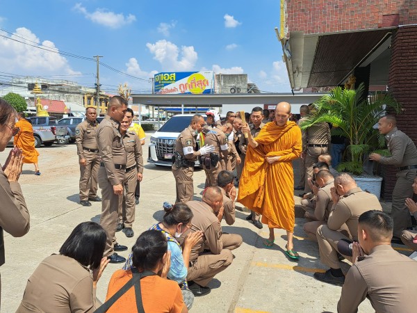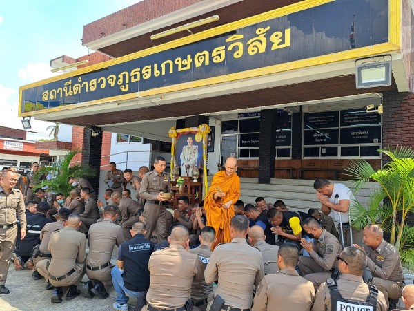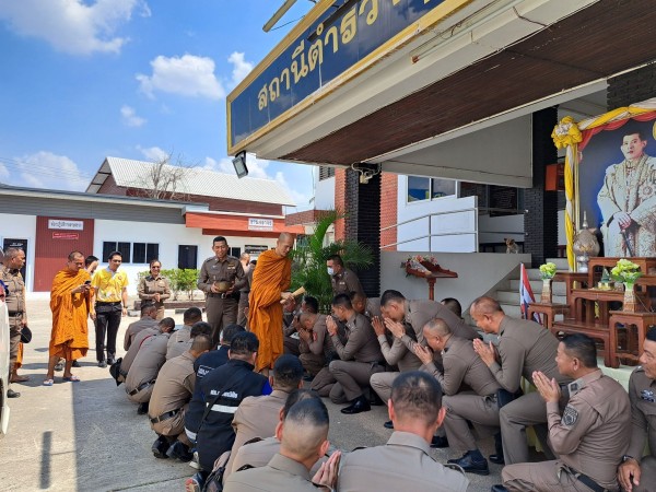 วันนี้ (5 มีนาคม 2568) เวลา 13.00 น. พระเดชพระคุณ พระราชวัชราวิทยาคม (ท่านเจ้าคุณต้อม) วัดท่าสะแบง ได้เดินทางมาประกอบพิธีเจิมห้องทำงาน ประพรมน้ำมนต์ ห้องทำงาน ผกก.สภ.เกษตรวิสัย พร้อมทั้งประพรมน้ำมนต์ให้แก่ข้าราชการตำรวจ สภ.เกษตรวิสัย เพื่อความเป็นศิริมงคล โดยมี พ.ต.อ.ประวิทย์ โทหา ผกก.สภ.เกษตรวิสัย พ.ต.ท.สุวิทย์ ปะกำแหง รอง ผกก.ป.ฯ พ.ต.ท.ชวลิต อาจหาญ รอง ผกก.สส.ฯ และข้าราชการตำรวจ สภ.เกษตรวิสัย ถวายการต้อนรับ