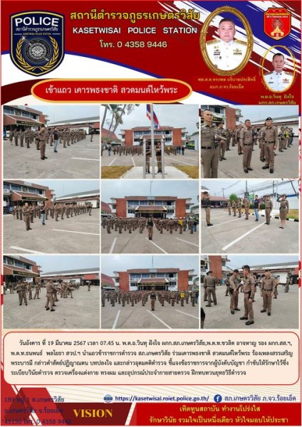 วันอังคาร ที่ 19 มีนาคม 2567 เวลา 07.45 น. พ.ต.อ.วินทุ ฝังใจ ผกก.สภ.เกษตรวิสัย,พ.ต.ท.ชวลิต อาจ...