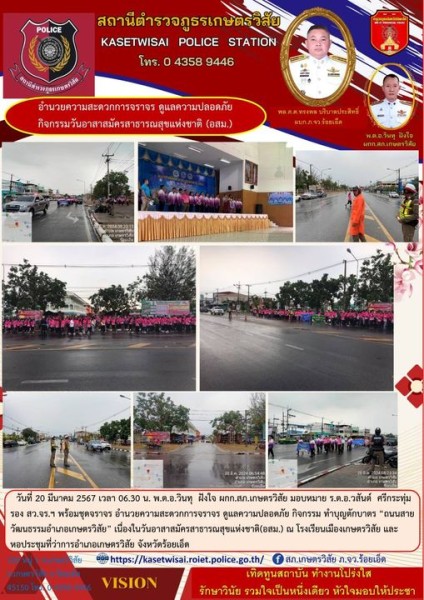 วันที่ 20 มีนาคม 2567 เวลา 06.30 น. ชุดจราจร อำนวยความสะดวกการจราจร ดูแลความปลอดภัย กิจกรรมทำบ...