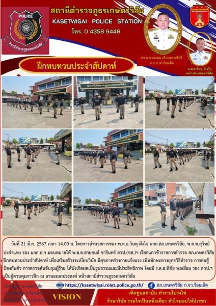 วันที่ 21 มี.ค. 2567 เวลา 14.00 น. โดยการอำนวยการของ พ.ต.อ.วินทุ ฝังใจ ผกก.สภ.เกษตรวิสัย,พ.ต.ท...