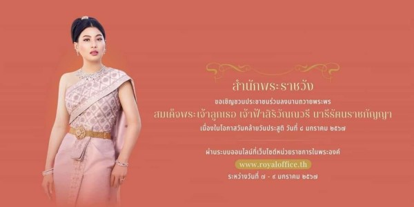สำนักพระราชวัง ขอเชิญชวนประชาชนร่วมลงนามถวายพระพร สมเด็จพระเจ้าลูกเธอ เจ้าฟ้าสิริวัณณวรี นารีร...
