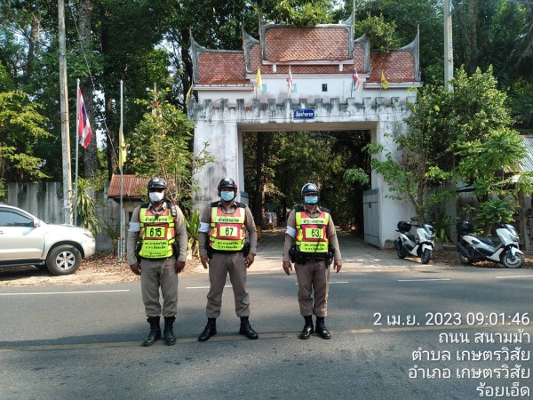 ชุดจราจร สภ.เกษตรวิสัยอำนวยความสะดวกการจราจร ที่วัดบ้านป่ายางเนื่องจากทางวัดได้มีการจัดอบรมคุณ...